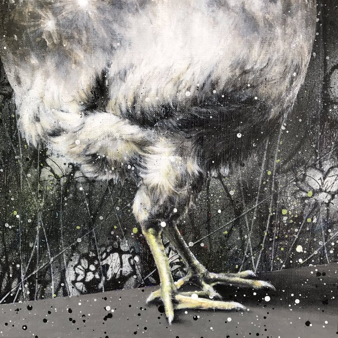 F6サイズのキャンバスに、アクリル絵具とステンシル、マーカーで描きました。