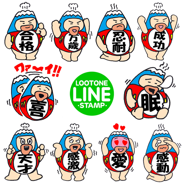 LINEスタンプ「合格!! ラッキーフジダルマン 」発売中。