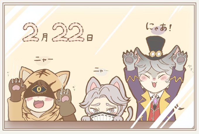 #猫の日 #第五人格イラスト 遅刻だけどにゃんこ! イソップ「イライさんは虎なのでネコ科で間違い無いですが…貴方は狼でしょう…?」 ジョゼフ「細かいことは気にしなくていいんだよ。ほら、猫っぽいでしょ?」
