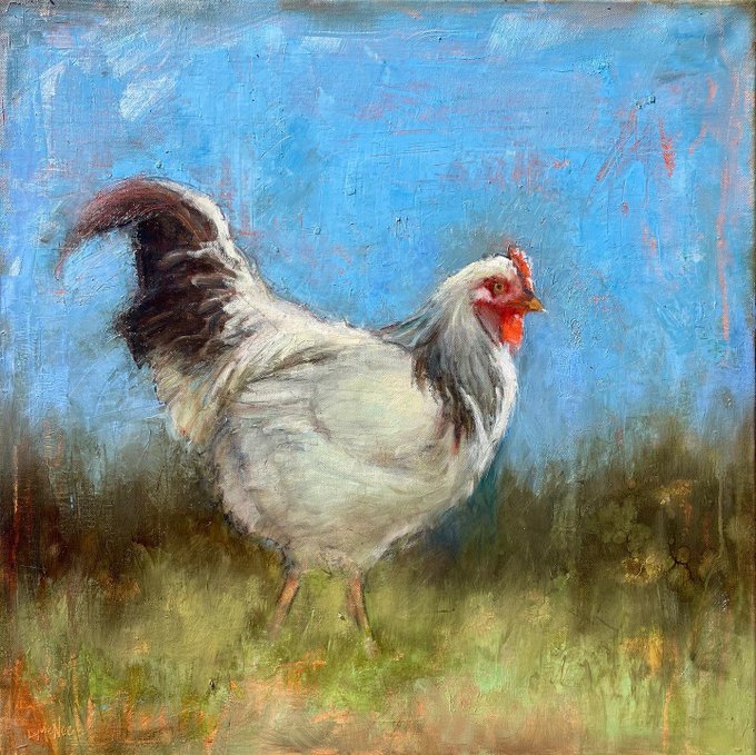 “Happy Chicken” will be heading to Dana Gallery in Missoula, Montana for my upcoming one-woman April show. 🤠