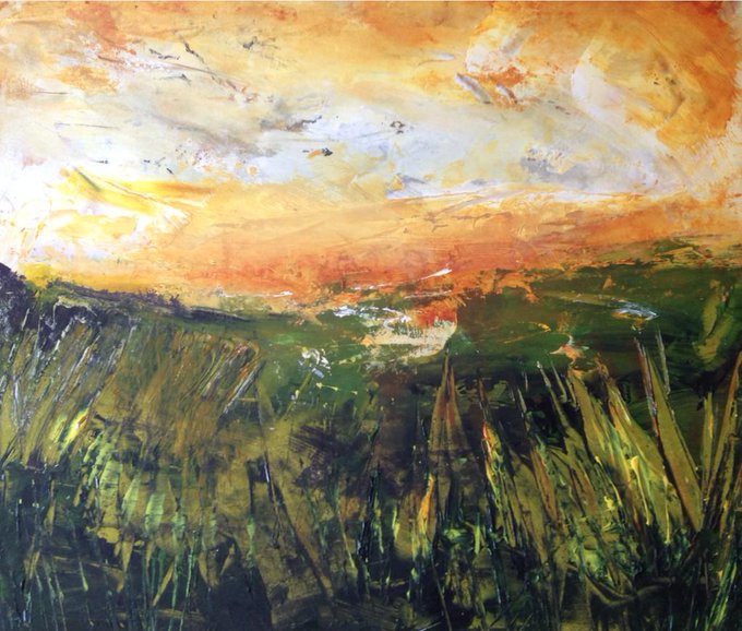 #artchallenge Day 2. Marsh Sunset, mixed media. Destined for @chalkgallery soon! And I nominate Richard Heys