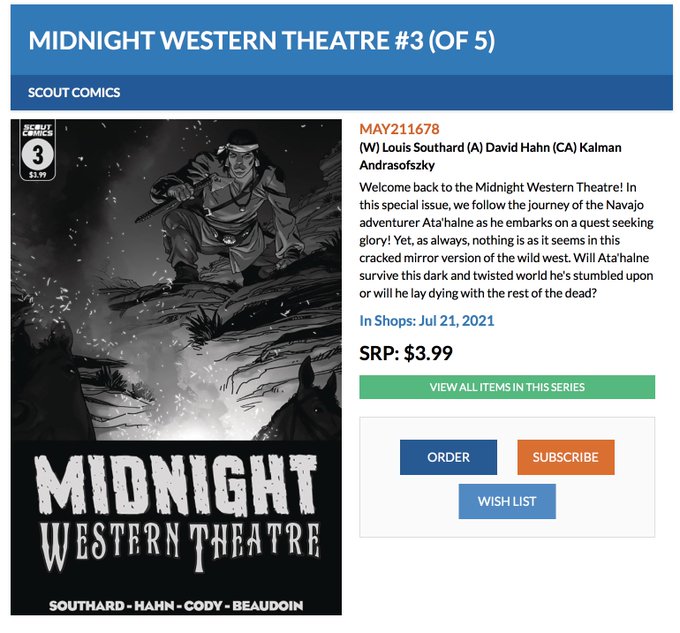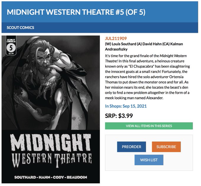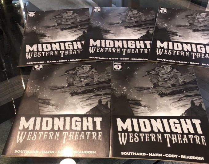 The penultimate and 4th issue of MIDNIGHT WESTERN THEATRE from @ScoutComics is out on Wednesday (8/25/21)!