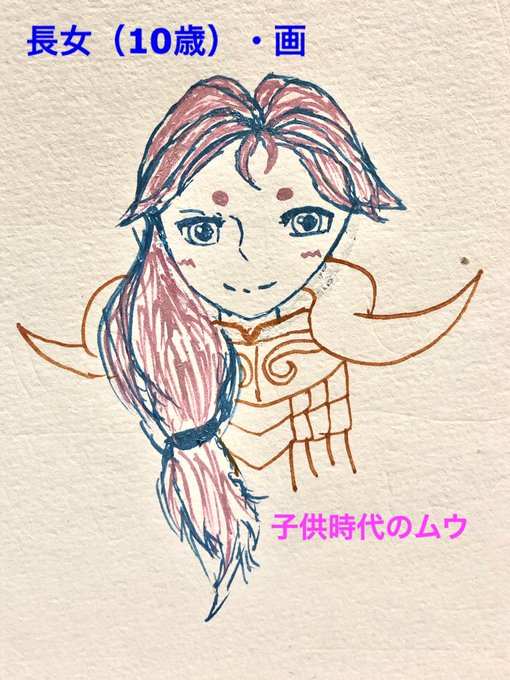 セインティア2話見終わった長女が何か書いてて、勉強してる✨?!と思ったらムウ様描いてた。