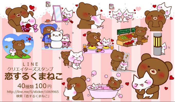今日は猫の日!!くまとねこが恋をした。二匹のほんわかでラブラブな日常がスタンプになりました。ぜひ恋人同士で使ってみてください♡ http://t.co/qp5WywlXzm