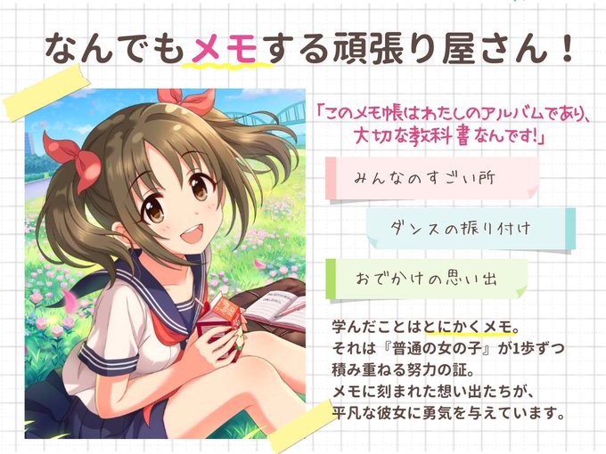 「可愛くなりたい」。そんな女の子の平凡な願いを叶えるために、どこまでもまっすぐに努力できるアイドルです!