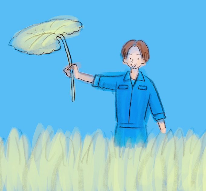里芋の葉と澤本夏輝さん🌱 #畑と言えば澤夏 #澤夏と言えば畑 @gojiterechu @fantastics_fext