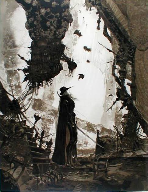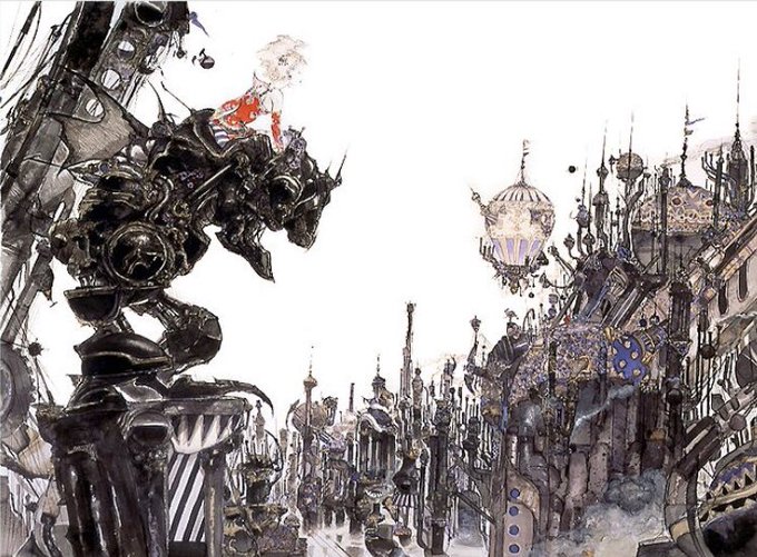 天野喜孝先生はファイナルファンタジーのキャラデザインやイメージイラストで有名な人だから、みんなも一度は見たことあると思う。 特にテンション上がったのはこの2つ! 写真は撮れなかったからネットから拾った画像だけど 1枚目の黒だけでここまで表現できるのとか、2枚目の細かい街の表現が素敵。