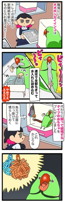 インコのおもちゃ、一つだけあるのを取り合うのが楽しいみたい🦜 850 #えるポピの絵日記かくところ
