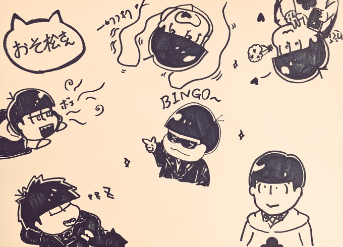 もー全員描くの間に合わないから 既存の絵に描き足すことにした! いつか描きかけの絵は仕上げる( •̀ᄇ• ́)ﻭ #5月24日はおそ松さん6つ子の誕生日 #一松生誕祭 #十四松生誕祭