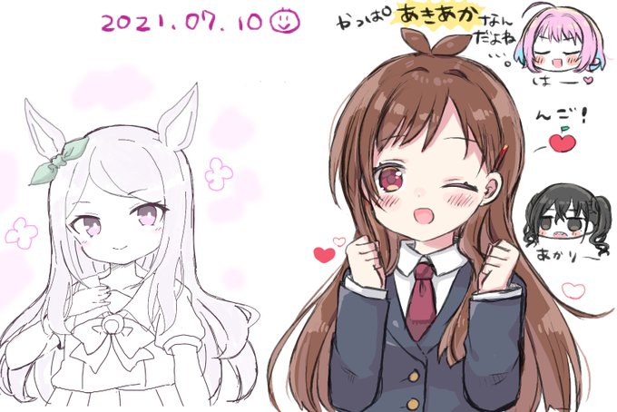 友達と絵茶した〜!1枚目は勝手に銀髪キャラ縛り☺️と思っていた(偶然)友達のウマ絵が可愛い…あとはほぼ私の絵日記😂