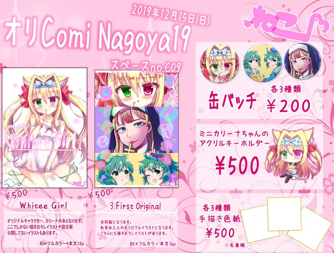 オリComi Nagoya19(オリジナル) 2019年12月15日(日) ポートメッセなごや スペースno.C09 になりますーーー。お品書きできたらまた投稿するね〜。