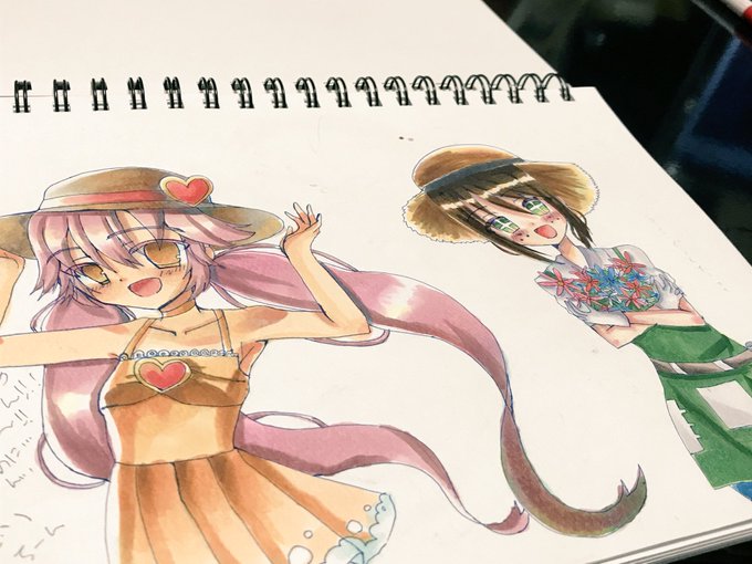 最近描いたものまとめー。リリカちゃんと左の庭師ちゃんは妹に塗ってもらったもの。 #アナログ #コピック