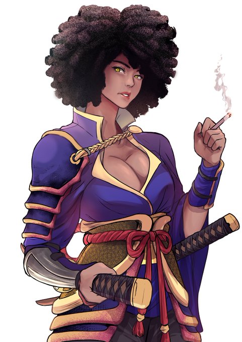 ) was inspired by Jin (Samurai Champloo), Tomoe Gozen with a hint of Bishamon from 'Noragami'.