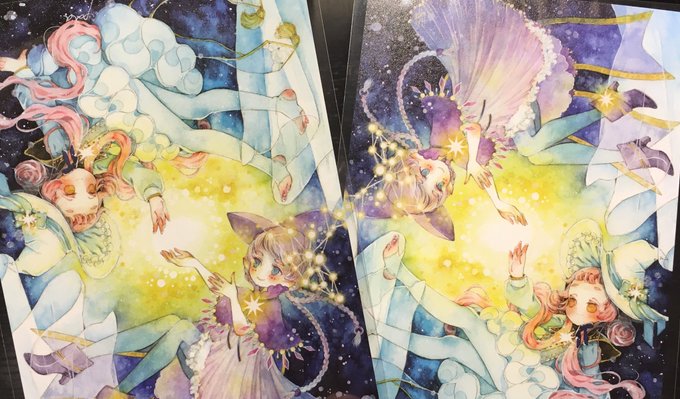 合作のポスカを2枚買っている理由は、裏に線画があるので、表と裏でファイリングしようかなと思いまして。 合作の絵、すごく良いです、好きです。ヒヅキさんの子が上、ぱたさんの子が下っていうのは、特別理由があったりするもんなんでしょうか。 #きらめきの境界