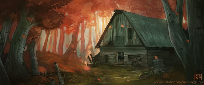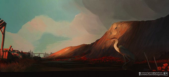 Hi, I'm late for #PortofolioDay once again! My name is Romane and I study art for games. I make illustrations, concept art and 3D environments ✨