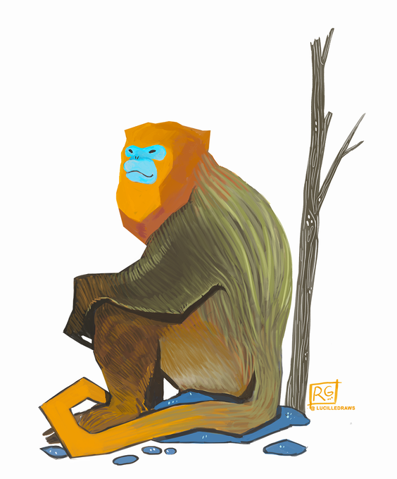 Snub-nosed monkeys have the best color palette 👌#illustration #snubnosedmonkey #rhinopithecus