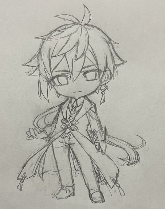 いとこの誕生日に描いた鍾離先生これがこうなってこうじゃって感じだけど下書き絶妙にバランスが悪い