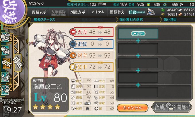…ということで瑞鶴改二!五航戦は始めたころからずっと憧れの娘達でした。瑞鶴かっこいい…素敵…