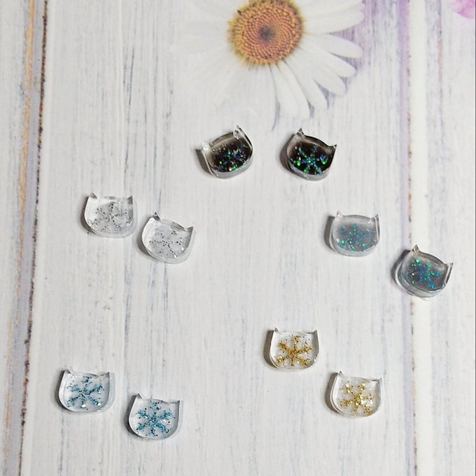 今回 #ピクスク イベント期間中にご購入頂いた方に(金額設定はございません)、新作雪猫の1粒タイプを樹脂ポスト又は樹脂ノンホール(貼るピアスは希望者)でノベルティとしてお付けします😁♥️