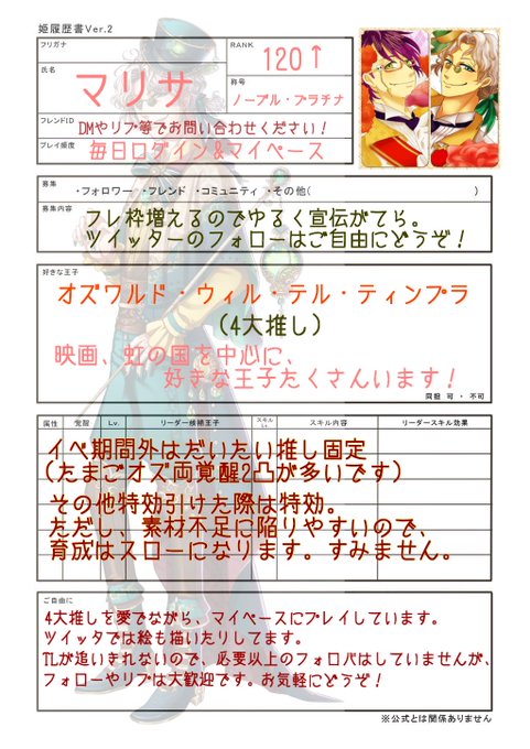 今回の企画には、未覚醒ウィルで参加させていただきました!!主催のガルさんから「マリサさんの描くウィルが大好きです」というお言葉を頂けて、本当に嬉しいです!参加された皆様の王子と並べられたこと、感無量です…!ありがとうございました!そしてお疲れ様でした! #夢100映画の国合作企画