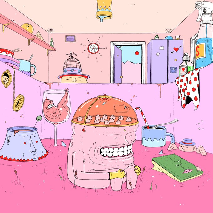 Timelapse of “The Daily Spin” artwork, created using hand drawn, frame-by-frame animation. This piece is currently up for auction on @SuperRare - full artwork below 👇🏼 https://t.co/WLKG7a44EY