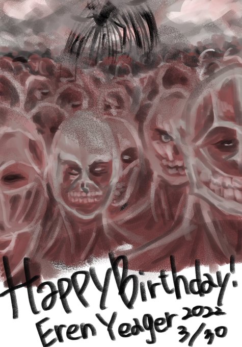 エレンお誕生日おめでとう𖤐 𖤐 HAPPYBIRTHDAY!!! 背景ほとんど隠れちゃったけど薄ら見えるかな? 今週末も楽しみ!!! 絵を初めて8ヶ月 進撃の巨人があったからやってこれた! #エレン #エレン誕生祭2022 #エレン・イェーガー誕生祭2022