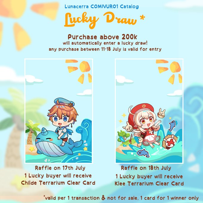 Everyone who purchase above 200k will enter a Lucky Draw! You can win Childe/Klee Clear Card