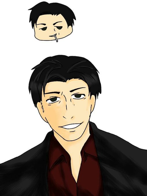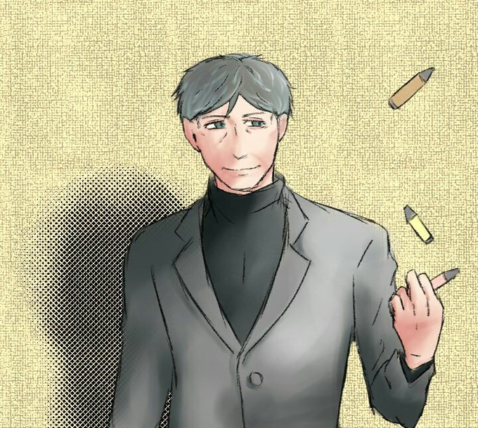 上里作次郎。ヤクザ、世話焼き、自己犠牲、たらし、高身長、スーツ、黒髪、前髪上げ。これをおじさんでまとめ上げた結果がこいつ。 #うちの子で性癖ドストライクの子は誰ですかって聞いても来ないから自分で性癖詰めまくった子を言う