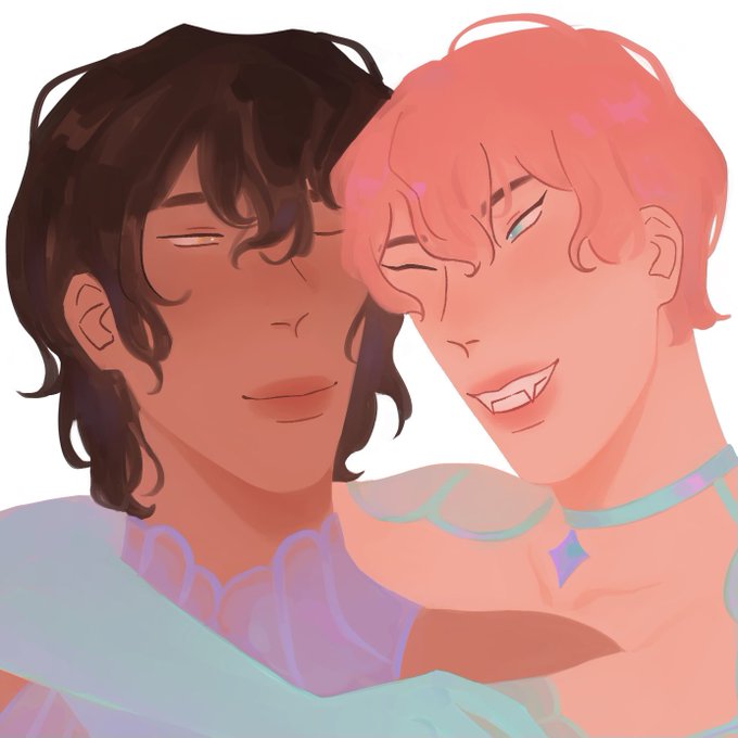 Feeling a bit art blocked so here’s a doodle of my ocs holding hands and being shirtless I guess lol