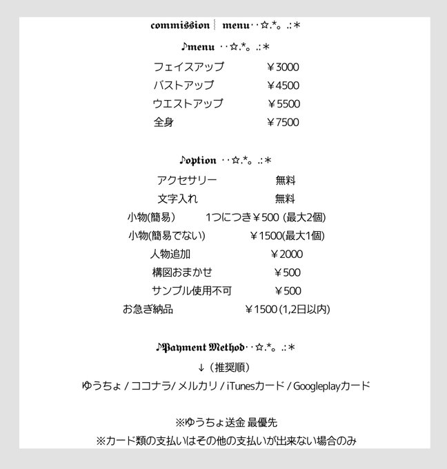 立ち絵は¥7500から受け付けています。お高めですが、是非ご検討ください🙇♀️
