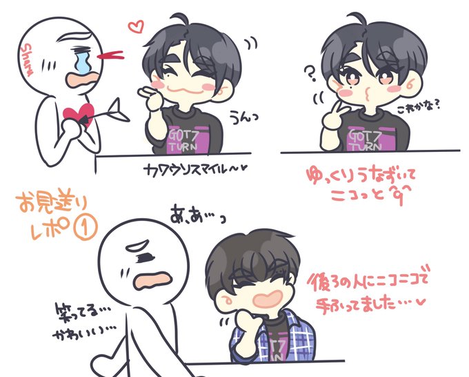ベムちゃんにほっぺ むにっ( '-' )ノ)`-' )てされて、 「恥ずかしいですね…///」っていう ジニョンさんの破壊力に-HP∞ #GOT7fanart #BamBam #Jinyoung oung #뱀뱀 #진영 #TUNEUP