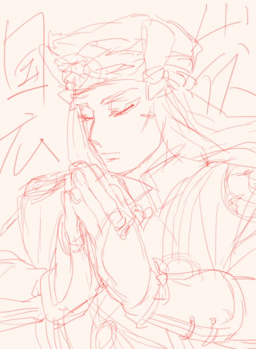 審神者一周年が近づいてきたので、現状いる刀剣男士をすべて描くことに挑戦中です。 色塗りはなし、加えて構図をなるべく被らせないために一気にラフ描いてから清書するスタイル。 現状一番まともなラフの鶯丸さん。16口まで完了