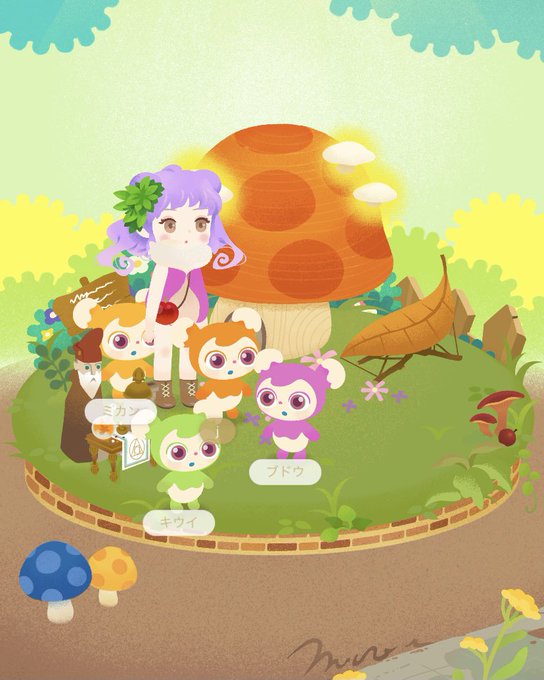 ログインした瞬間のピグたちの様子が好きで、これは多分ホムとピグたちお話してたんやろな〜〜って図で可愛い #うちのリヴリー