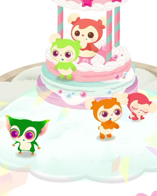 ピグミー人形を仲間だと思って集まってきたのか、パンケーキ食べたくて集まってきたのか。どっちにしても密で可愛い #うちのリヴリー