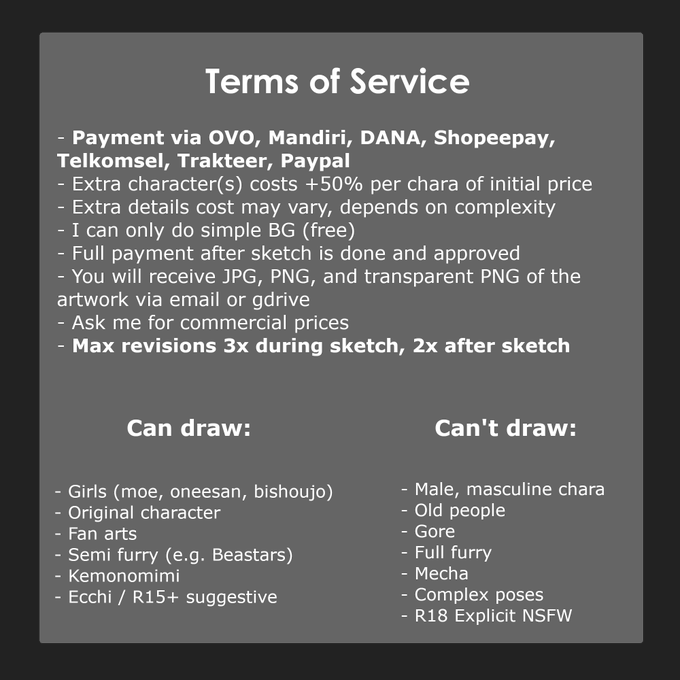 Open commission dengan keterangan sesuai gambar.