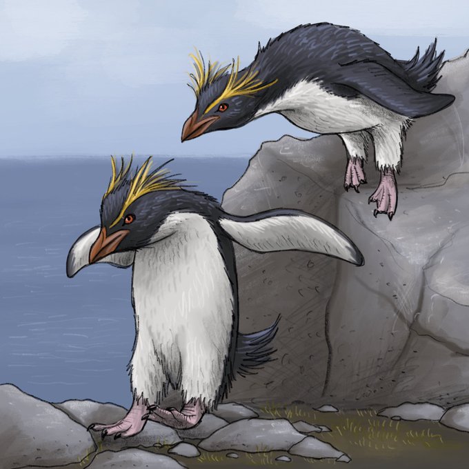 Today’s #DecemberDechART prompt, penguin. Here’s some rockhoppers hopping some rocks 🐧