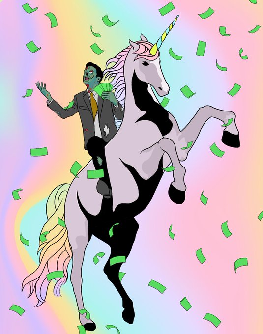 Illustration for @barronsonline: Ultra-low interest rates have wrought a slew of 🦄 unicorn startups and 🧟♂️ zombie companies