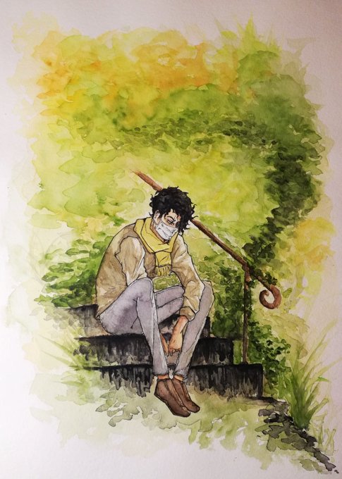 I've been in a sakusa obsession for a few days ... So..Here is my expression for my sakusa kiyoomi addiction as a traditional watercolor drawing!