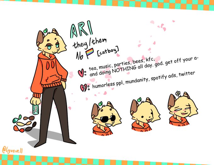 after 2 years with this guy i have FINALLY felt like drawing a ref for him lmao, well here u go, his name is ari