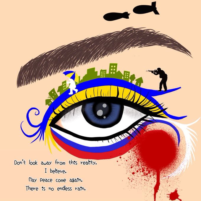 This is a work that I drew with the hope that I would like you to keep an eye on the battle that is happening now. There is no endless battle as there is no endless rain. With prayer that peace will come as soon as possible.
