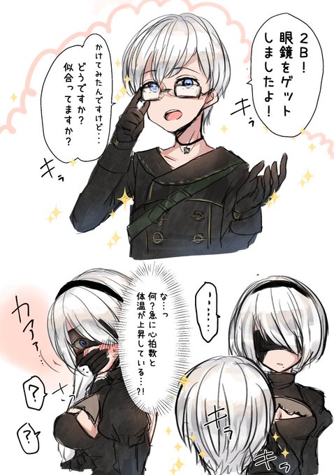 前から描きたいと思っていた眼鏡ネタの2B9Sを描きました😇