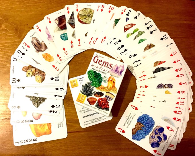 鉱物トランプを手に入れた‼︎かっこいい‼︎特徴毎にスート分けられたりしてるのかしら? もったいなくて遊べないかも。少なくともゆったり遊ぶゲームじゃないと無理。 スピードとかには絶対使えない。