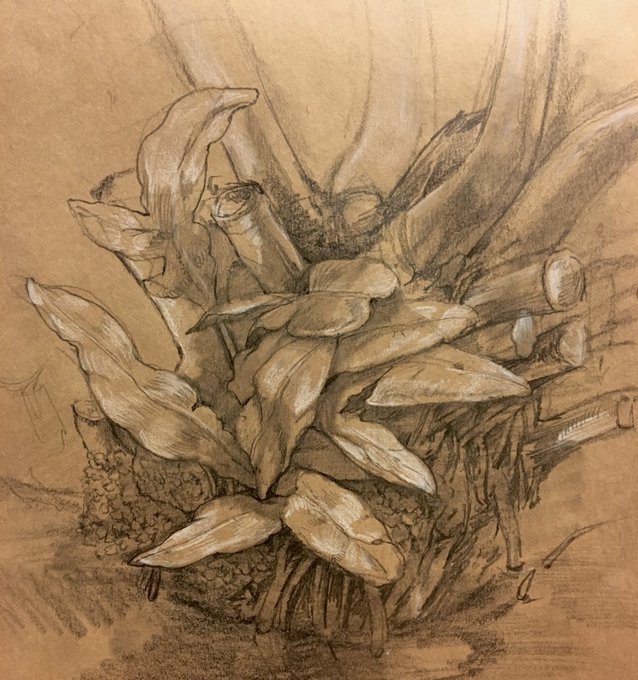今日お昼は御苑に行ってスケッチして来ました。外は寒かったのですが、温室でポカポカでした。