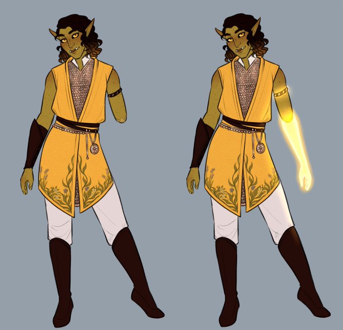 Outfit design?? I don't know her 😔 But here's my half-orc cleric, Rin! (he/they) ☀️