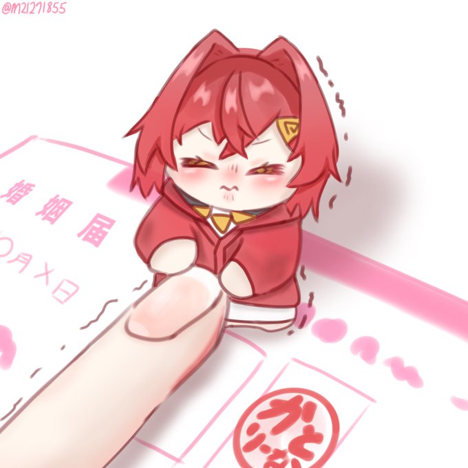自分の指を置くとアンジュに婚姻届押されますので是非‼︎ #絵ンジュ