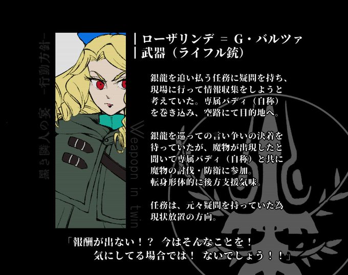 ローザリンデ、鐘、カリュガル、夏平の4名で参加いたします。行動方針は各画像に記載しています。