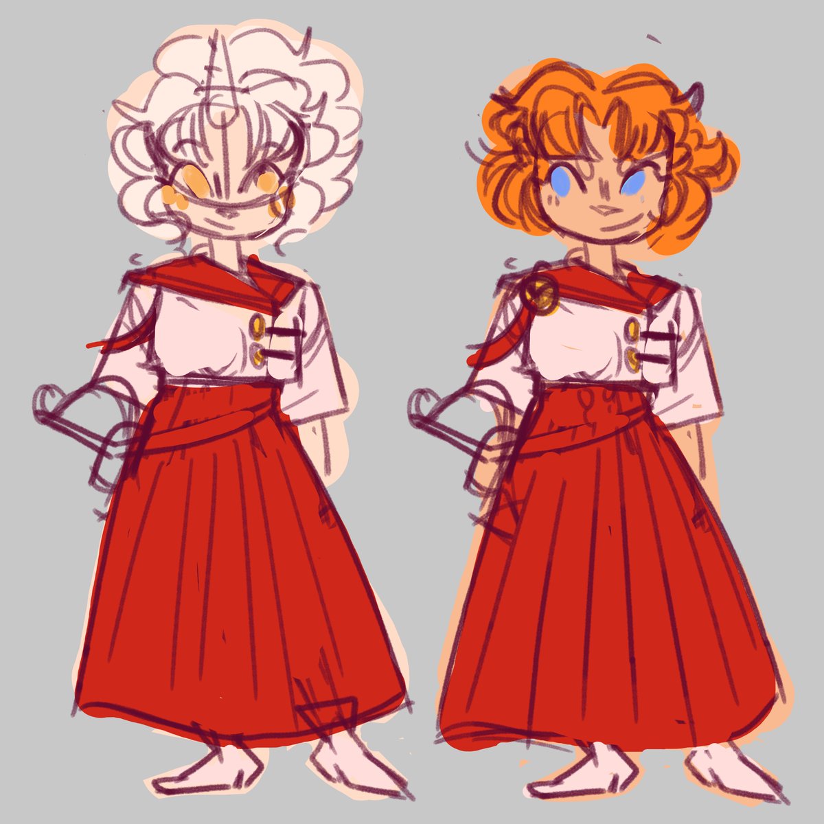 oh yeah incredibly rough sketch i made of their uniform (training camp uniform? training uniform? school uniform?) jay has a white beaded bracelet from kira then kira has orange leg warmers from jay