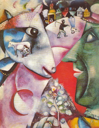 傷ついた幼いロバに姿を変えた/大好きな故郷の村にささやかな命の木を送ろう「私と村」エッフル塔と新婚の二人/三枚目「彼女をめぐりて」ー君は死んでしまったふるさとに帰りたいと泣きながらーシャガールのあの美しい幻想的な絵は、二人の妻への愛がなせる魔法的愛の賛歌と想像していた。