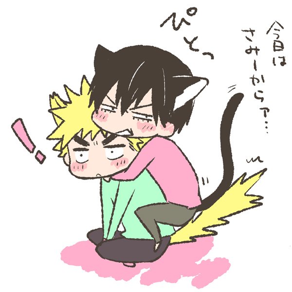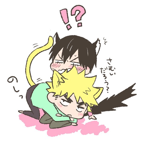 お題「ねこの日」 ぎりぎりできた!寒いからくっついとこ。 @fukuara_60min #fukuara_60min