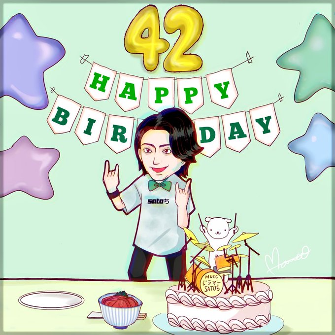 MUCC 生きる伝説のドラマー SATOちさーん お誕生日おめでとうございます💚 人生100年時代!体には気をつけて、やりたいこといっぱいやっちゃってくださいね。 まずは42の年に、幸せがいっぱい舞い降りますように•*¨*•.¸¸☆*・゚